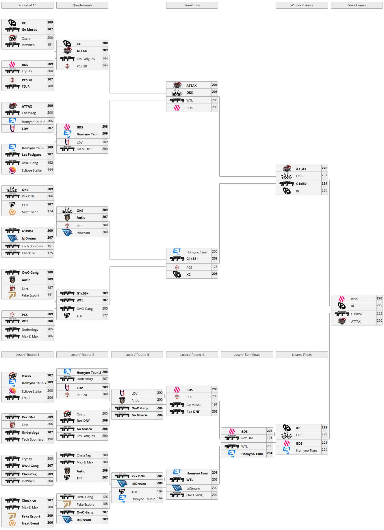 16h45 : quart de finale (winner bracket) & quart de finale (loser bracket 1)