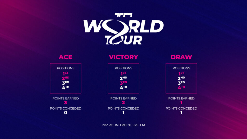 Chaque tournoi World Tour sera joué sur le même format et sur les mêmes circuits.