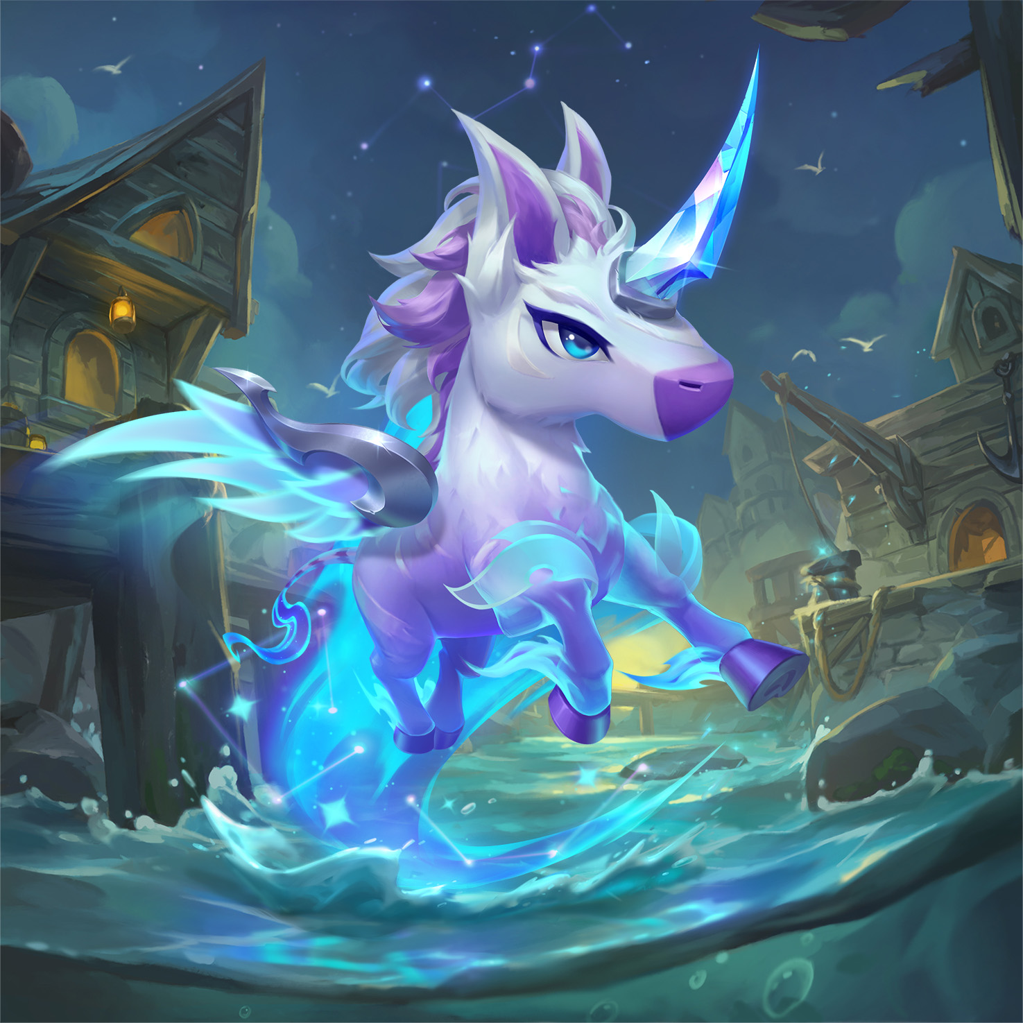 Maintenant que nous avons vu les terrains de jeu, intéressons-nous aux petites légendes qui vous représenteront grâce au passe+. Notre passe+ a deux petites légendes. Lumicorne cabricorne broute sur les pentes du Mont Targon, mais aussi dans le passe+ en version 1 étoile. Ne vous en faites pas, ce ne sont pas les fragments d'étoile qui manquent dans le passe pour emmener Lumicorne cabricorne au sommet du Mont Targon ! L'autre petite légende, Farfadet plongeur, se trouve en bas des failles les plus profondes, ou au début du passe (que vous ayez le passe ou le passe+).