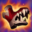 - vous gagnez 1 charge toutes les 30 sec (max : 3 charges). Attaquer un sbire ayant moins de 65% de ses PV consomme 1 charge, ce qui l'exécute, octroie la prime complète aux champions alliés, vous octroie 65 PO et vous rend 20-80 PV. Les champions équipés d'un Bouclier relique ne participent pas à l'allocation de prime des sbires et récupèrent 50% de PO en moins quand ils tuent des sbires. La prime des sbires éliminés sera entièrement attribuée à l'allié le plus proche. Tuer des monstres rapporte 50% de PO en moins.
