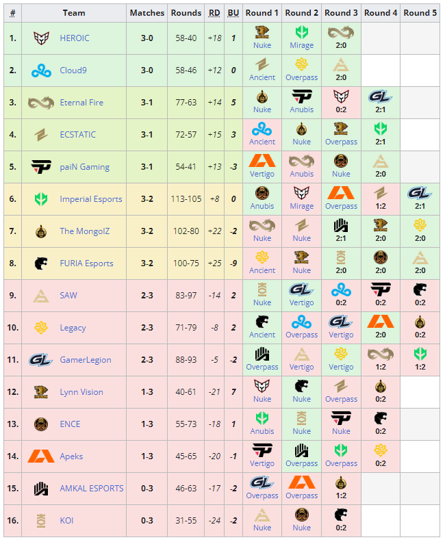 - Les 8 meilleures équipes accèdent au Elimination Stage
