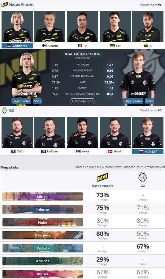 Après avoir mis un terme aux rêves de major turcs, les NAVI vont cette fois-ci s’attacher à mettre un terme aux rêves de la famille Kovac. Bien organisés, et grâce à un redoutable w0nderful avec son fusil vert, les hommes de Aleksib ont atteint les demi-finales de ce major aux dépens de Maj3r et sa bande de chez Eternal Fire. Mis en difficulté (16-13) sur Mirage puis très forts sur Inferno (13-9), l’équipe européenne a su s’extirper du piège de l’outsider et retrouvera G2 pour cette deuxième demi-finale de major. Les samouraïs ont, eux, mis en déroute des MOUZ bien trop tendres sur Inferno (13-9) et vertigo (13-6). Du haut de ses 1.53 de rating, NiKo semblait intouchable et les NAVI vont avoir fort à faire pour l’arrêter.