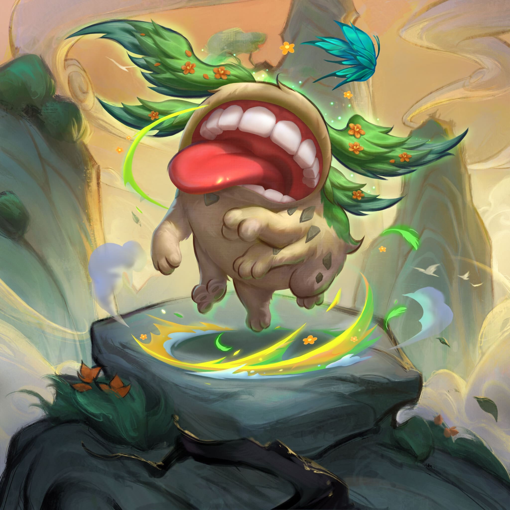 Admirez Hundun : ce champion invaincu du combat de regards est en passe de devenir le champion sans visage de la Convergence. La variante Hundun de base est disponible à l'achat direct dans la boutique pour 750 RP. Ses variantes épiques sont aussi disponibles à l'achat direct dans la boutique pour 925 RP, et peuvent également être trouvées dans les trésors TFT. Découvrez les variantes ci-dessous : Hundun de base, Hundun en fleurs et Hundun esprit jumeau.