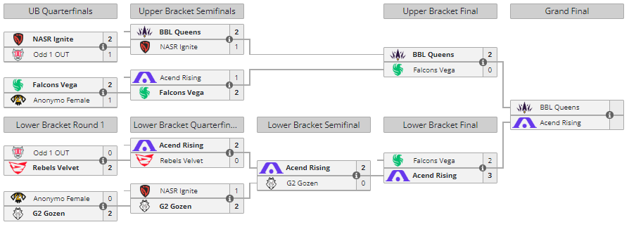 TerminéTeam Falcons VEGA2vs1Anonymo FemalePlayoffs